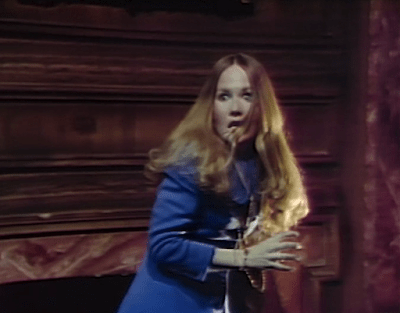 Today, the second half of the episode is virtually a one-woman show featuring Nancy Barrett as heiress Carolyn Collins Stoddard. Carolyn is being tormented by haunted house-style effects resulting from her involvement with a supernatural entity. The script, by Gordon Russell, recycles elements of #361, #658, and #897.