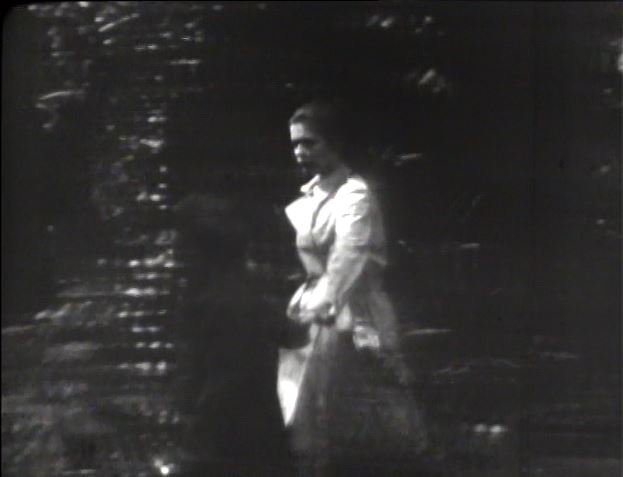 Determined to befriend David, Vicki agrees to go to the Old House with him to look for ghosts. We are treated to 90 seconds of location footage of Vicki and David walking through the woods to the Old House. This is by far the longest exterior sequence in the entire series, and it is done with extraordinary ambition. Most of Dark Shadows’ exterior shots are not only extremely brief, but are accompanied only by music. In this one, the actors’ voices are dubbed throughout, and multiple sound effects are added.