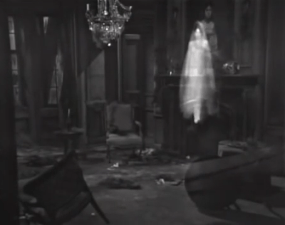 David tells the portrait that his governess Vicki knows that his father murdered Bill Malloy. He asks Josette if Bill’s ghost is with her and the other ghosts. Apparently she doesn’t answer him. He says that if his father finds out what Vicki knows, he will murder her, and then probably go on to murder him as well. David hears sounds outside the Old House. He puts out his candle and hides behind a chair.
