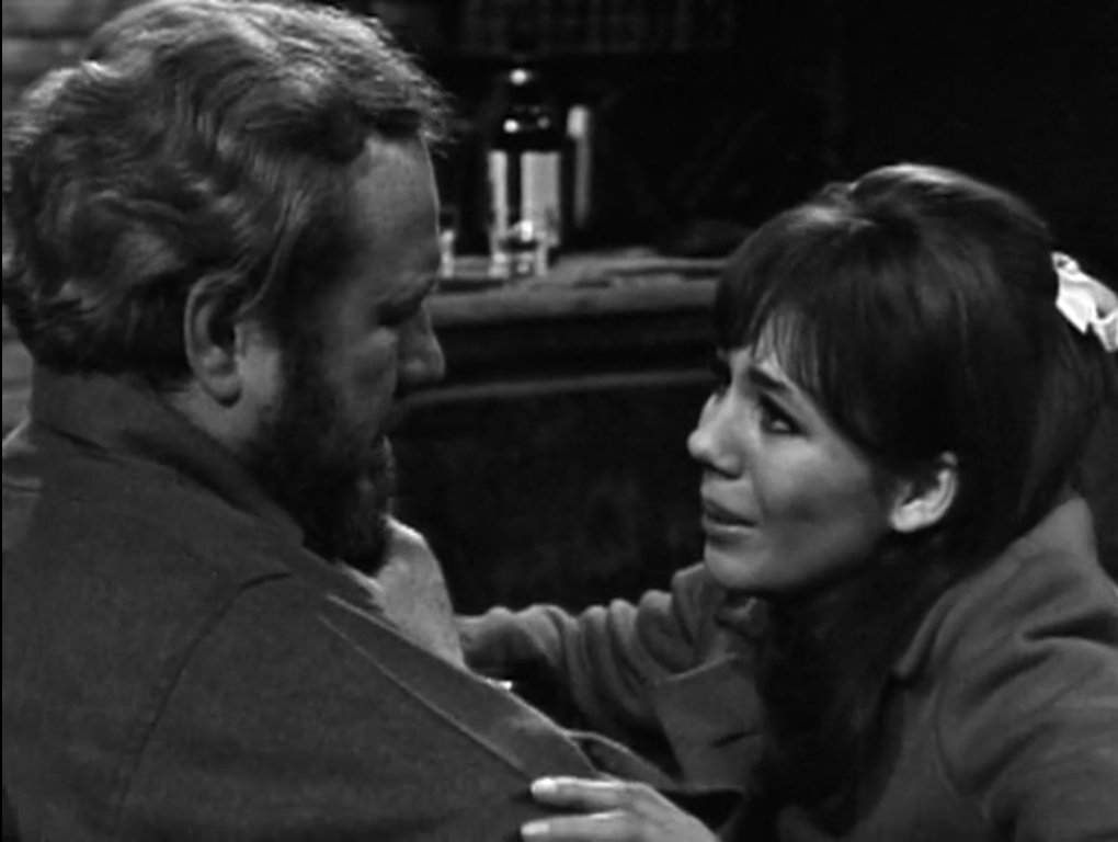 In between the two Sam/ Maggie scenes, we see Burke having dinner with well-meaning governess Vicki at Collinsport’s only night spot, The Blue Whale. Vicki is telling Burke everything she knows about the current doings at the great house of Collinwood. She is worried about reclusive matriarch Liz, who hasn’t been herself lately, and uncomfortable around Liz’ houseguest, seagoing con man Jason McGuire. Burke has never heard of Jason. As the Collins family’s sworn enemy, Burke of course listens attentively to all the intelligence Vicki has gathered. One does wonder what the Collinses think of their governess blabbing so much to Burke, who casually mentions in response to one of Vicki’s expressions of concern for Liz that he is trying to drive her out of business.