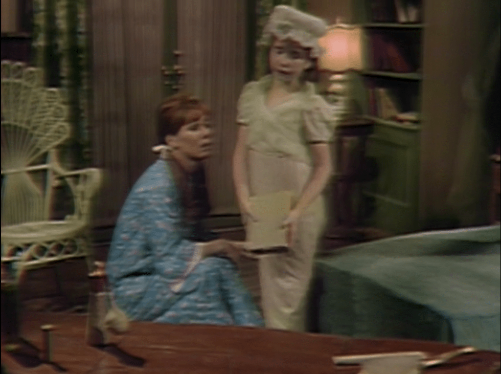 This is the last episode to end with ABC staff announcer Bob Lloyd saying “Dark Shadows is a Dan Curtis production.” We do hear the announcement again in February of 1969, but that won’t be because Lloyd has returned- they used an old recording for the music under the closing credits that day, and they picked one with him on it.