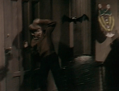 When Barnabas is about to attack someone, dogs start howling. Sometimes this works to his advantage, but it so often puts his intended victims on their guard that it doesn’t really seem to be something he is doing on purpose. So this bat represents something new. Perhaps Barnabas is using magic to control a bat- if so, it marks the first time we have seen Barnabas use magic to project influence over something other than a human mind. Or perhaps he himself has assumed the form of a bat. If so, that is the first indication we’ve had that he has shape shifting powers. In either case, Barnabas’ powers have just gone up a level.