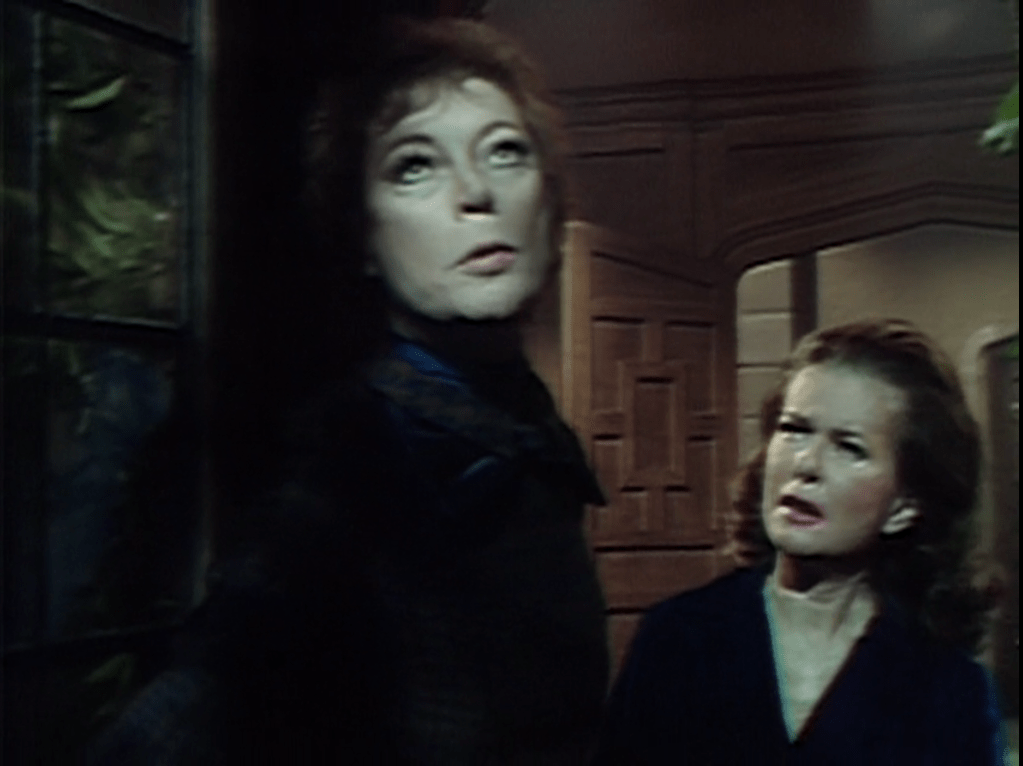 An unexpected visitor drops in. It is Elizabeth Collins Stoddard, mistress of Collinwood and escaped mental patient. Liz tells Barnabas that she saw Julia in a room with a coffin. Barnabas takes a while to put the pieces together, but it finally dawns on him that Liz is describing Tom’s lair. He goes there, and finds Julia unconscious on the floor next to the coffin.