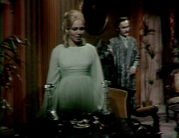 Adam has a crush on heiress Carolyn. Shortly before yesterday’s episode was taped, Nancy Barrett fell ill, and so the part of Carolyn was temporarily recast with Diana Walker. Adam comes to Nicholas’ house today and declares “There can never be another Carolyn.” Miss Walker wasn’t that bad, but Miss Barrett is a unique talent, so I see where he’s coming from. Adam says that he is going to tell Barnabas to forget about the experiment.
