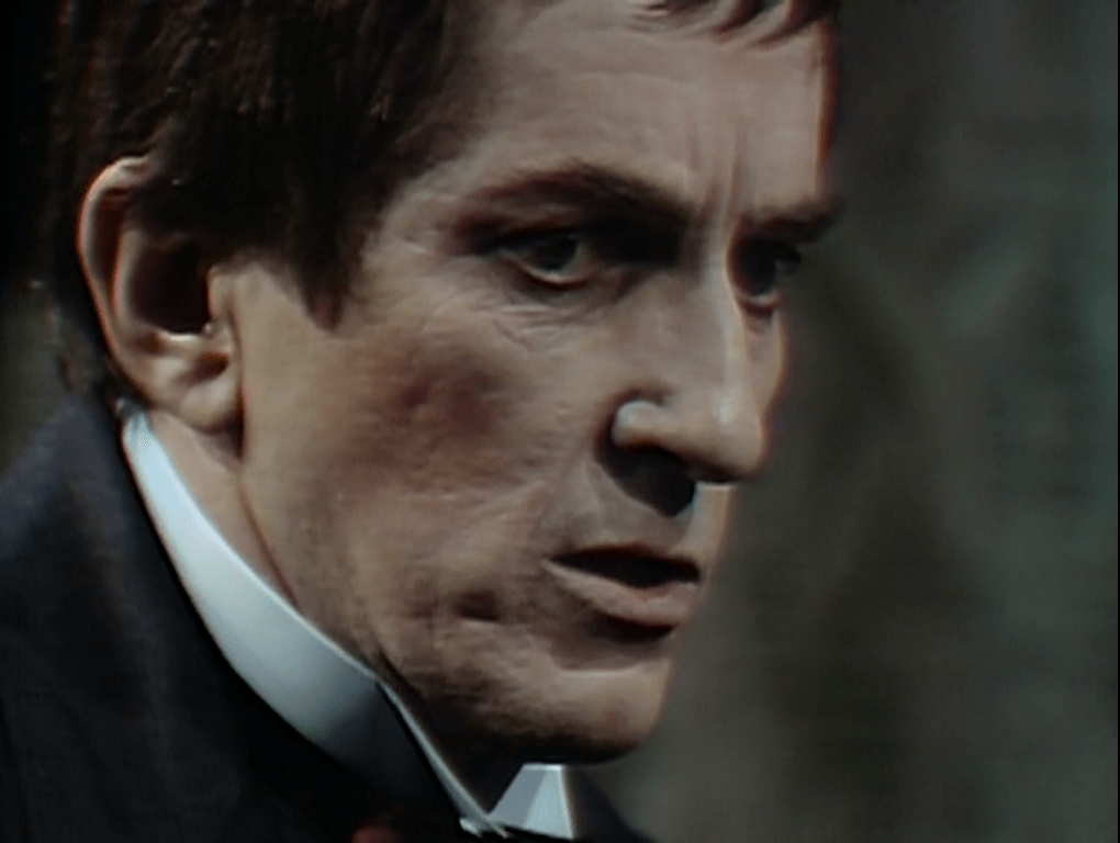 The master class in acting resumes as we cut to the Old House on the estate. The mysterious Barnabas Collins has recently arrived at Collinwood and is staying in the Old House as the guest of his distant cousins in the great house. Rachel and Barnabas are attracted to each other, and she tells him what has happened. He says that he believes her, and goes on to say that no one at Collinwood is what they seem. She pleasantly replies “Except for you!” He hesitates before agreeing.