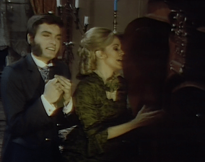 Laura went up in smoke in March 1967, when the show took place in a contemporary setting, and reappeared in April 1969, when it was a costume drama set in 1897. In the interval, Dark Shadows changed from a slow-paced, moody Gothic drama meant for an audience largely consisting of people who were fans of Joan Bennett’s in the 1930’s to a slam-bang supernatural thriller with a huge following among preteens. In her first tour as Laura, Diana Millay could focus on her strengths in dry comedy and subtle psychological drama. This time around, she recognizes the new demographic and plays Laura like a villain on Batman. At times it seems odd that Dirk isn’t wearing a jumpsuit with his name stenciled on it.
