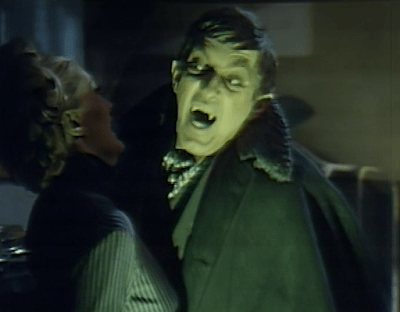 When we hear the sound effects associated with the werewolf or see the consequences of his attacks or catch a glimpse of him as a blur in the middle of a cloud of shattering glass, we can be afraid of him. Unfortunately, the show often gives us a long look at him, and he is not scary at all. They didn’t have the schedule or the makeup budget to cover his whole body in fur, so he wears Quentin’s suit. Seeing him standing there in that little outfit you don’t want Magda to shoot him with her silver bullets. At most, you might swat him with a rolled-up newspaper and tell him he is a bad doggie.
