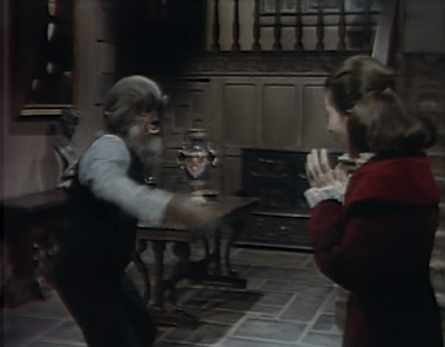 The werewolf gets into the great house of Collinwood and attacks Judith. Beth shows up in the nick of time and shows the werewolf her pentagram. He flees. Judith asks why the werewolf would run away from her, and Beth refuses to explain. At first she denies that it happened, then she asserts that the werewolf is probably as afraid of them as they are of him.