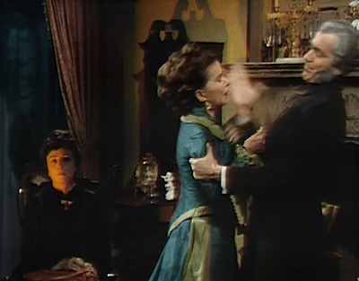 Sandor’s death and Fenn Gibbon’s ascent to prominence mark a transition in the show. They are in the middle of a bloodbath, killing off a great many of the characters who have defined the first twenty weeks of the 1897 flashback. Previously, that has meant they were getting ready to reset the show and go back to contemporary dress. But 1897 has been such a hit that a transition need not mean a return to the 1960s. There is still enough going on in this period that they can introduce a bunch of new characters, develop some new stories, and get a new phase of Dark Shadows started right here in the late Victorian era. Who knows- if they play their cards right, this period might be the new home base for the show, and the 1960s might be an afterthought.