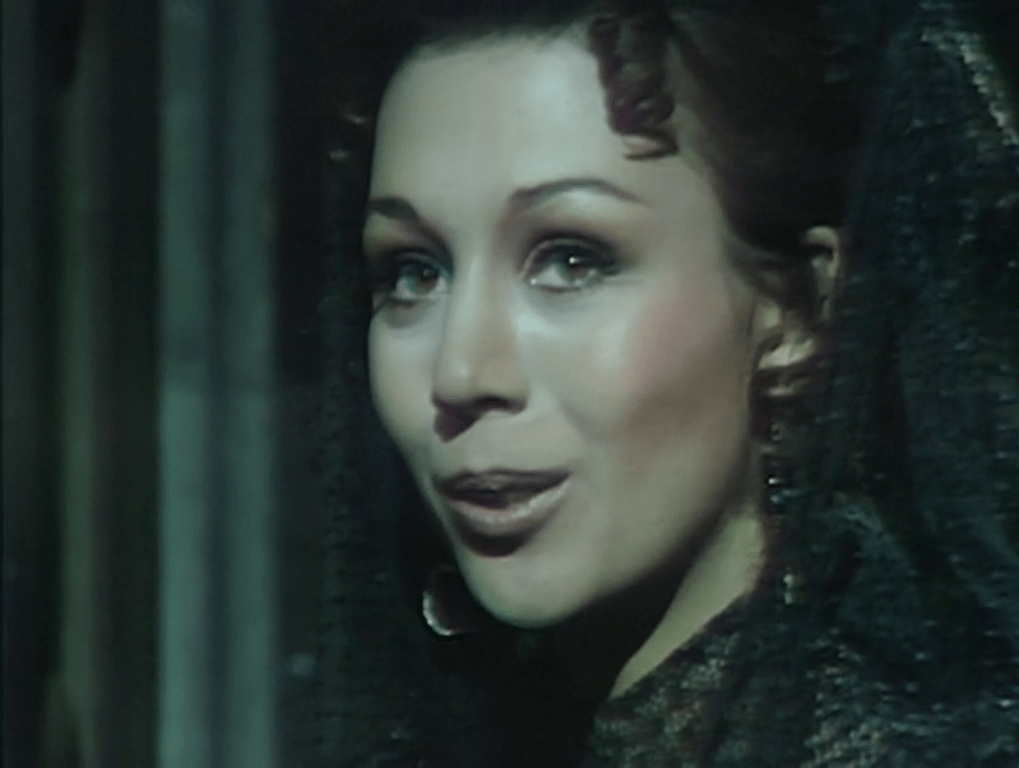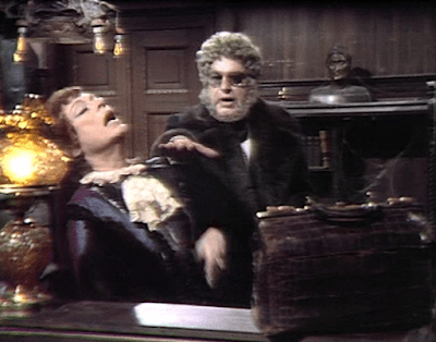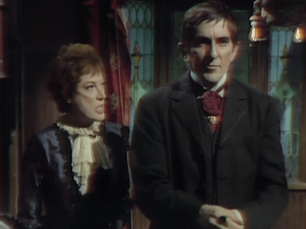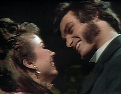 From November 1967 to March 1968, Dark Shadows was set in the 1790s. The cast included Kathryn Leigh Scott as the gracious Josette, Louis Edmonds as haughty overlord Joshua Collins, and Lara Parker as wicked witch Angelique. Now, the dramatic date is 1897. Miss Scott plays Kitty Soames, an American who went to England to be a governess, married the Earl of Hampshire, and is now widowed, penniless, and scheming to land another rich husband. Edmonds takes the role of stuffy but lovable Edward Collins, who is the focus of Kitty’s ambition. Parker is still Angelique, who is both immortal and a time-traveler.