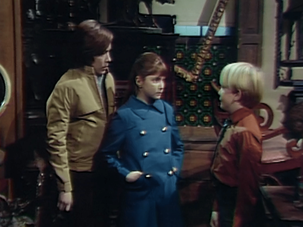 We then have the first scene on Dark Shadows populated by three child actors. It was a breakthrough when the ten year old David played with the ghost of nine year old Sarah Collins in the spring and summer of 1967; their scenes, the first interaction between children on Dark Shadows, advanced it towards becoming a kids’ show. David had up to that point been the only child on the show. He was first a homicidal monster who threatened the adults, then a figure threatened by his mother Laura and in need of rescue. When we saw him with Sarah, the two of them built a relationship that was of importance in itself and that had consequences which grew to dominate the story, leading directly to the show’s first time travel segment in November 1967. In David and Sarah, the fans running home from elementary school to watch the show could see characters their own age driving the action.