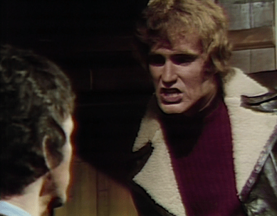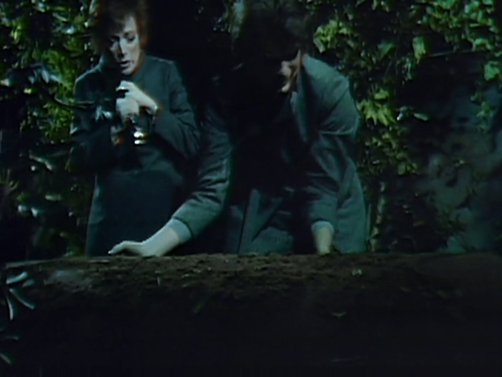 They’ve been doing a bit of videotape editing recently, as several awkward cuts have made clear. One might think that the whole Underworld sequence, pre- and post-title, was edited in from tape left over from yesterday’s shoot. But Miss McKechnie’s story proves that is not so. The episodes were done in sequence, so if the last bit of tape they shot yesterday had been the crushing of Amanda there wouldn’t have been any next scene to run off to and Miss McKechnie would have had plenty of help digging herself out from under.
