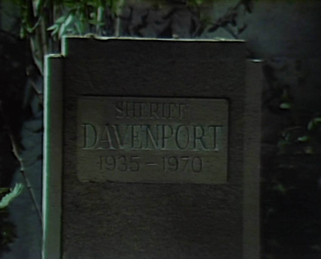 There is also some new information at the end of the episode. Barnabas says that Jabe can raise the corpses of those he has killed and use them as “an Army of the Dead.” We cut to a new grave with a marker reading “Sheriff Davenport.” The other day Jabe killed a law enforcement officer named Davenport; Davenport appeared to be the sheriff of Collinsport, but it turns out “Sheriff” was simply his first name. Sheriff’s hand bursts out of the soil.