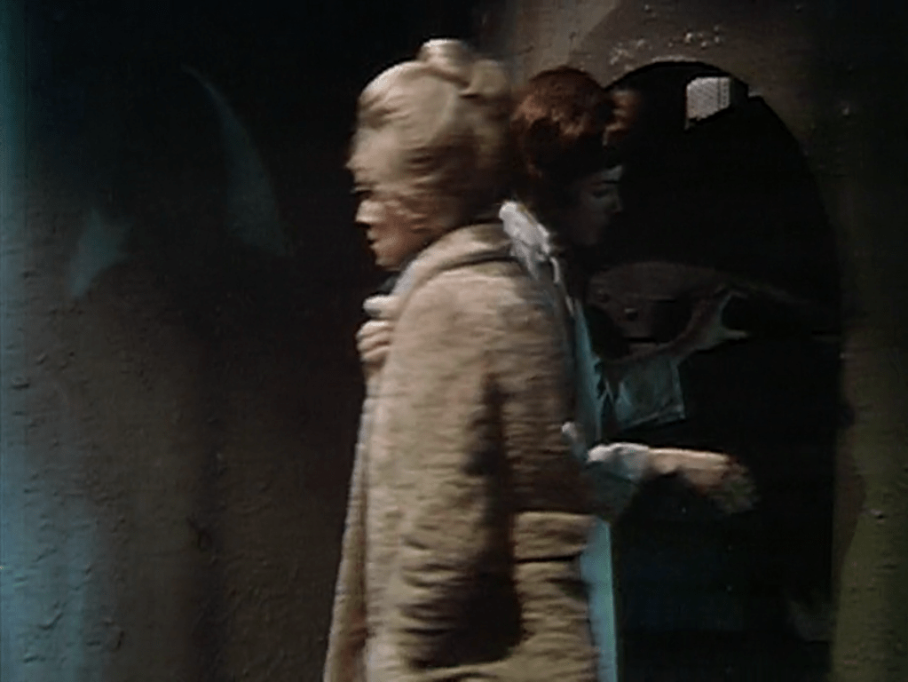 Quentin talks with Alexis about taking everyone and fleeing the house to escape from the ghost. Alexis says he can do what he thinks best, but that she is not leaving until she finds out more. Before we went back in time in the original continuity and saw Quentin as a living being in 1897, he was a ghost who drove everyone out of Collinwood, so when this Quentin thinks of taking the family and fleeing a ghost we see another inversion.