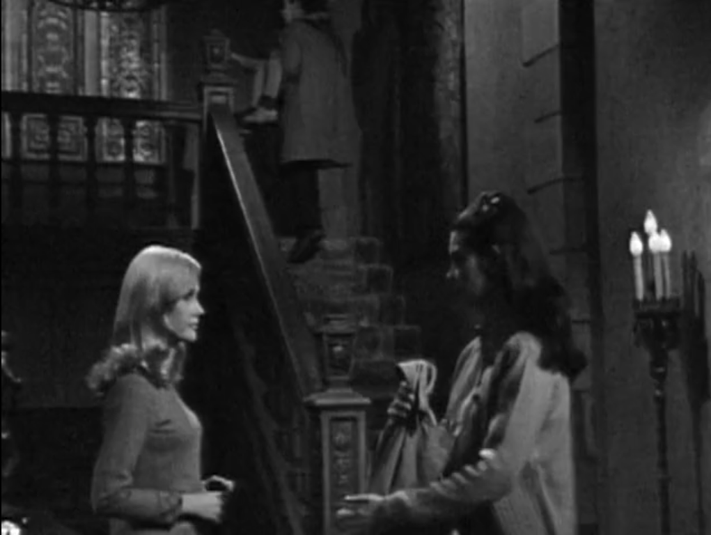 This is the last time we will see the Evans Cottage. In 1966 and 1967, the set was a symbol of the village of Collinsport, and scenes there showed the consequences that the doings of the rich people in the big house on the hill had for the working class who live in its shadow. By the time Maggie moved into Collinwood, they had long since given up on those kinds of stories. Dark Shadows is sometimes called “Star Trek for agoraphobes”; as we go, less and less of the action takes place anywhere other than Collinwood, and eventually they won’t even let us outside.