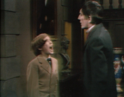 Julia’s displays of fear and bravery are a bit of an attention-getter for returning viewers. Last week she learned that it is only her “astral body” that is in 1897, while her physical body is in 1969. She is therefore immune to any physical harm. It is tactically sound to keep this information from Petofi, of course, but characters on Dark Shadows do not always have sufficient discretion to observe this basic rule of gamesmanship. Barnabas particularly is in the habit of showing all his cards to his enemies while hiding everything from those who would like to help him, and even Julia, who is the smartest character on the show, has done the same thing from time to time. The most celebrated example is probably #619, when she marched into a hostile warlock’s living room, told him everything he wanted to know, and somehow walked away the winner. But today not only does she keep shtum during the scene, the show doesn’t even let the audience in on what she’s doing. First time viewers are as much in the dark as Petofi is.
