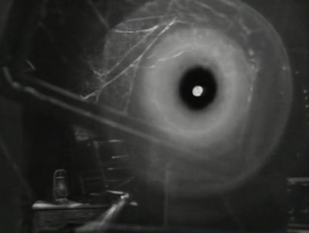 Roger and Liz have a scene in the basement of Collinwood. Roger’s fear of blackmail leads him to hope that he might find Sam’s paintings in a locked room there, while Liz’ fear of blackmail leads her to forbid that anyone ever go into that room. When Roger asks Liz what is in there, she refers to her long-absent husband, Paul Stoddard: “They are… ah… old things of Paul’s. Yes, that’s it! I put his things in there.” This is so obviously a lie she is making up on the spot that we laughed out loud. Joan Bennett must have meant to elicit this reaction.