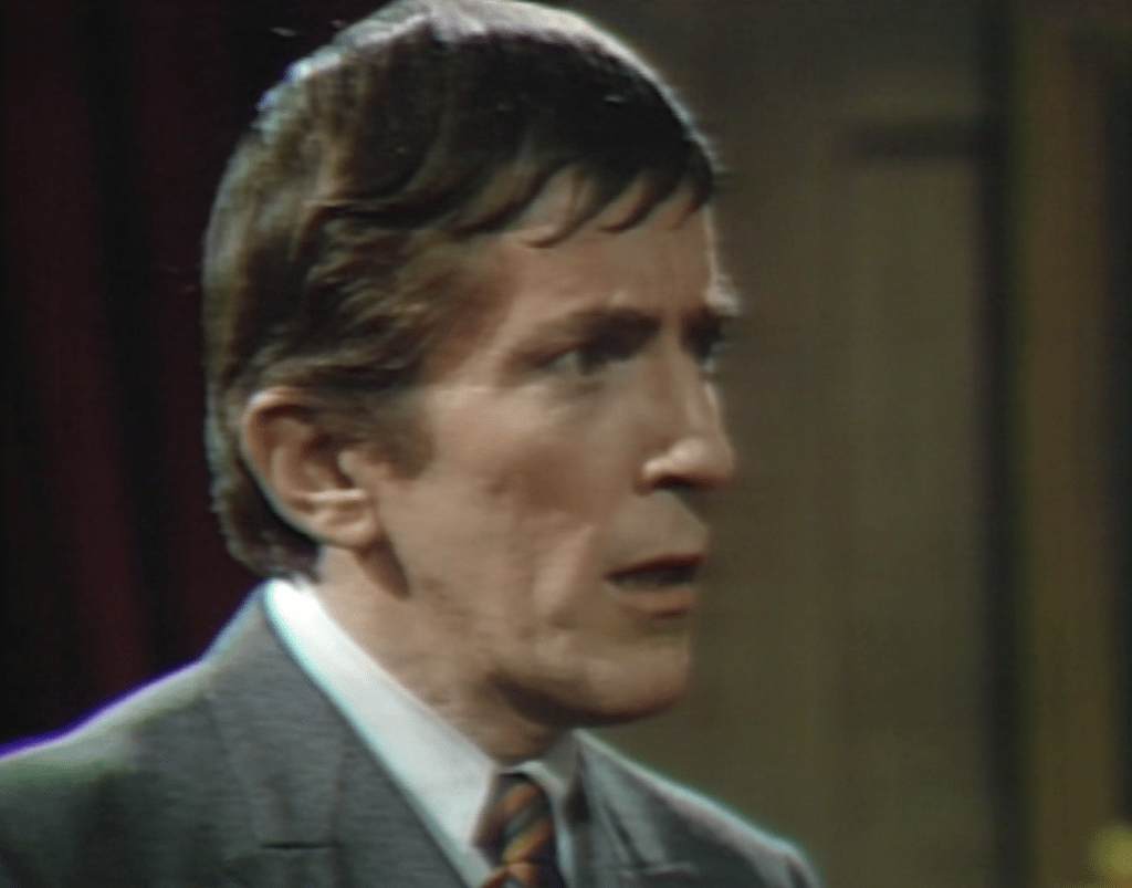 Edward says that Quentin might have lost the button anywhere at any time. He asks her what the authorities in the village of Collinsport would do if asked to choose between a Romani person’s word and that of a Collins. Magda drops the idea of going to the police, and tells Quentin that she will place a curse on him that will make him suffer as Jenny suffered, but that his suffering will not be subject to the release that death has brought Jenny. Quentin is terrified, Edward dismissive.