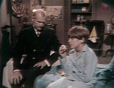 Carolyn’s young cousin, strange and troubled boy David, lets himself into her room. He touches her, and she awakes with a scream. He explains that he just dropped in to make sure she wasn’t dead. When she turns on the light, the screen is so bright that I reflexively squinted, a reaction I’d never before had to an image on Dark Shadows.