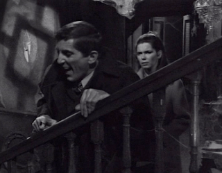 There are a few interesting moments. We begin with well-meaning governess Vicki entering the long-abandoned Old House on the grounds of the estate of Collinwood in search of her charge, strange and troubled boy David Collins. The doors swing shut, and she cannot open them. The recently arrived Barnabas Collins comes down the stairs, startling her. He opens the doors easily.