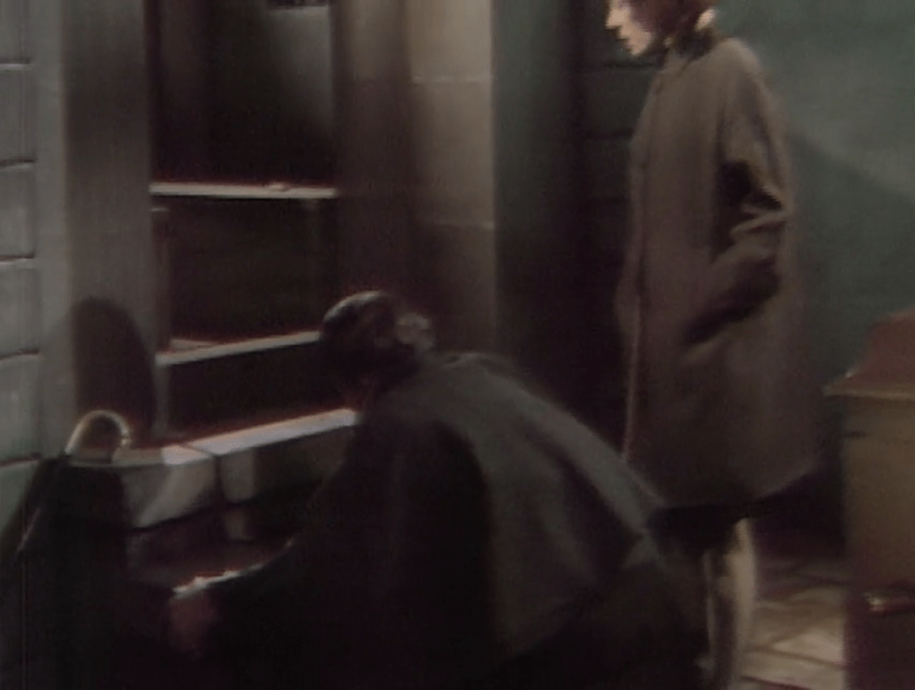 Mrs Acilius and I agree that the best part of the episode comes in the four seconds after Laura hears someone knocking on her door. As we’ve seen several times, she is sitting motionless, staring into the fire, and only after the second knock does she stir. This time Diana Millay does a particularly good job of looking robotic while Laura tears herself away from the flames.