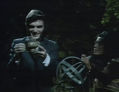 The contemporary world does make one appearance today. Before their encounter at the gazebo, Fenn Gibbon meets Quentin in the drawing room of the great house at Collinwood. Quentin is studying the Moon. The two of them have a little exchange about Quentin’s fascination with the Moon; considering that this episode aired a few hours after Apollo 11 lifted off on the journey that would put the first crew on the Moon, that fascination must have been pretty widely shared by the original audience.
