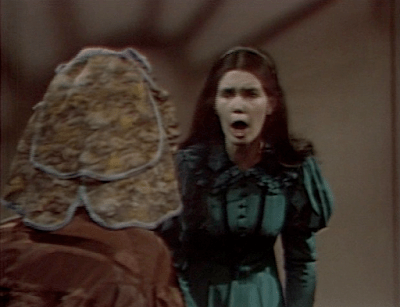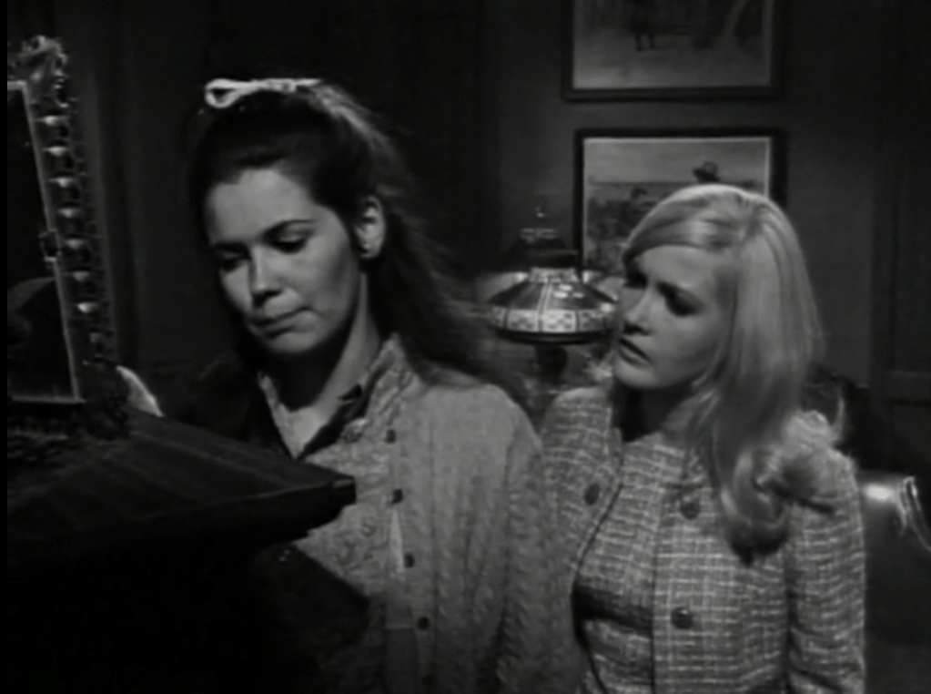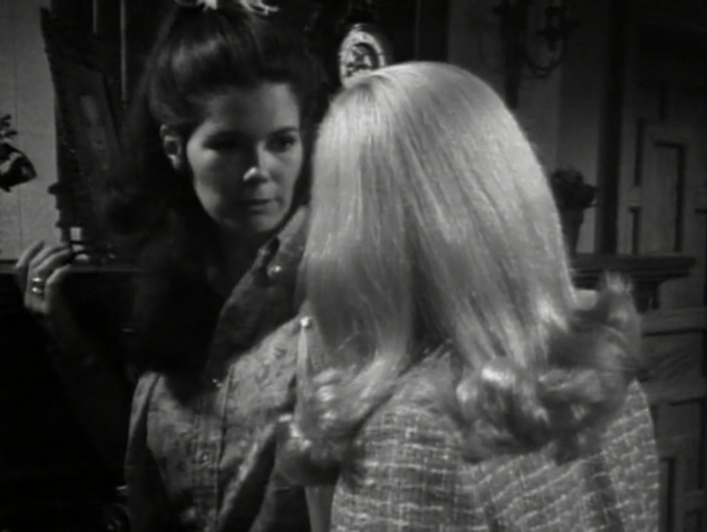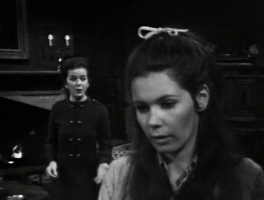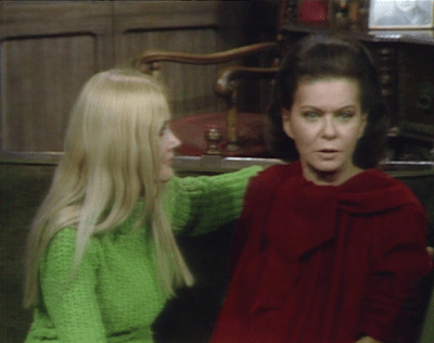 Liz is the one character whose brain seems to be in working order today. She can remember that her trouble started when her brother Roger’s wife Cassandra cast a spell on her. Barnabas and Julia know that Cassandra was in fact a wicked witch named Angelique, and that Barnabas has just returned from a trip back in time during which he destroyed Angelique. They assure her that Cassandra will never return. They can’t tell her why they are sure of this, because they, like the producers of Dark Shadows, have decided that Liz must never know what is really happening around her, lest she become an active participant in the plot. So all they can say is that they just know, and she is of course unconvinced.