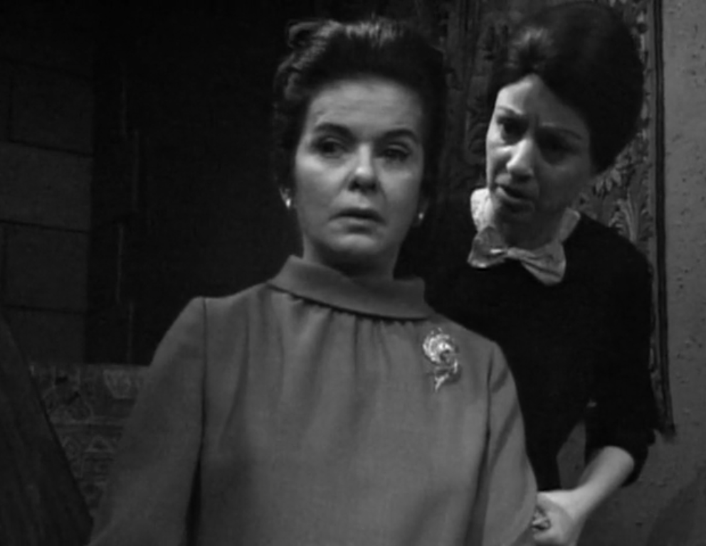 Their second scene is even more powerful. Maggie comes home from work to find a groggy Sam slumped in a low chair. Once he has come back to life, Sam tells her that the man was in the house while she was at work, and that he can’t find the paintings. He lets slip that the man lives in Collinwood. Maggie realizes that it must be Roger. Sam tries to deny it, but since Roger is the only man who lives there he is stuck. He can hardly claim that well-meaning governess Vicki, a 20 year old woman, was a man ten years ago, or that she paid $15,000 for ten paintings to put on display in her cubicle at the Hammond Foundling Home. He briefly claims that “Collinwood” was a slip of the tongue, but can’t keep that lie up.