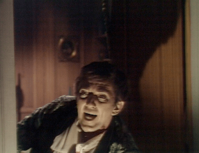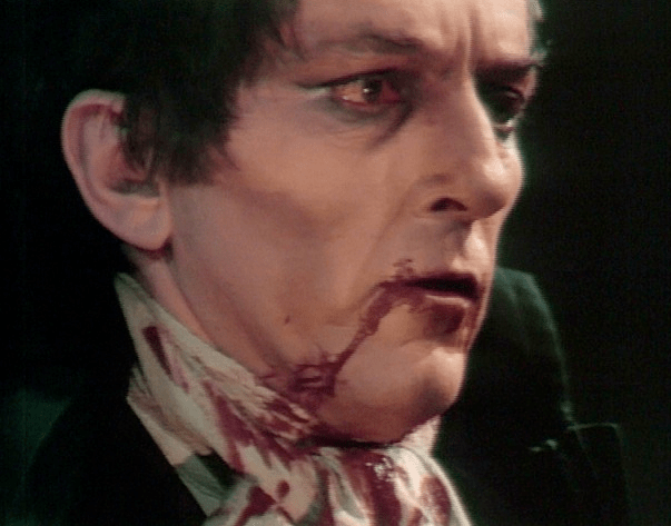 Moreover, Jonathan Frid’s performance as Barnabas departs starkly from anything else he does on Dark Shadows. After he calls himself a vampire, Frid’s whole body relaxes. His neck, shoulders, and hips are looser than we have ever seen them; even his knees bend a little. His voice shifts a bit away from the old-fashioned mid-Atlantic accent he typically uses as Barnabas, a bit toward twentieth century Hamilton, Ontario. At that point, he is not playing a murderer or a creature from the supernatural or an eighteenth century aristocrat- he is playing himself, enacting a scene from his own life.