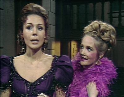But when the show made its first trip back in time, visiting the 1790s from November 1967 to March 1968, Kathryn Leigh Scott played Josette. That was a bold move. Longtime viewers were left with the uncomfortable feeling that Barnabas may have had a point when he devised the horrifying program of torture that made the show so terribly bleak for several weeks. When we see Miss Scott playing Kitty, who really is Josette and really does have to accept that fact, longtime viewers can only squirm as they remember Barnabas shoving Maggie into his old coffin and later walking down the long gray corridors of his basement on his way to the prison cell where he was going to murder her. We’ve since come to know Barnabas as an endearingly ineffectual comic villain, but it is a stretch to remind us of him as he was in those grim days and ask us to concede that he was in any sense right.