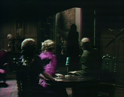 Judith does manage to do something Edward failed to do a while ago, and talks Pansy into moving back into the great house of Collinwood. She agrees to give up the apartment she rented in the village of Collinsport after she took a job doing her old act at the local tavern, the Blue Whale. We saw her at the Blue Whale in Friday’s episode; it was shortly before nine PM, and she was the only person in the place. So perhaps her income as a cabaret performer is not particularly lavish, and the mansion is a more appealing place to live than the apartment that job would pay for.