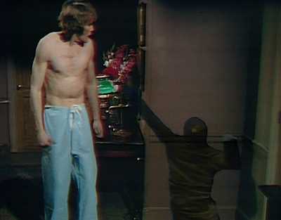 We see Jabe and Carolyn asleep in bed together on their wedding night. This is the first time we see a couple sharing a bed on Dark Shadows. What’s more, while most sleepers we have seen have been fully clothed under their bedsheets, even wearing shoes, Jabe is wearing only pajama bottoms, and those are tugged down noticeably below his waist when he first gets out of bed. You can say goodbye to the uptight Sixties, it’s the Seventies now, baby.