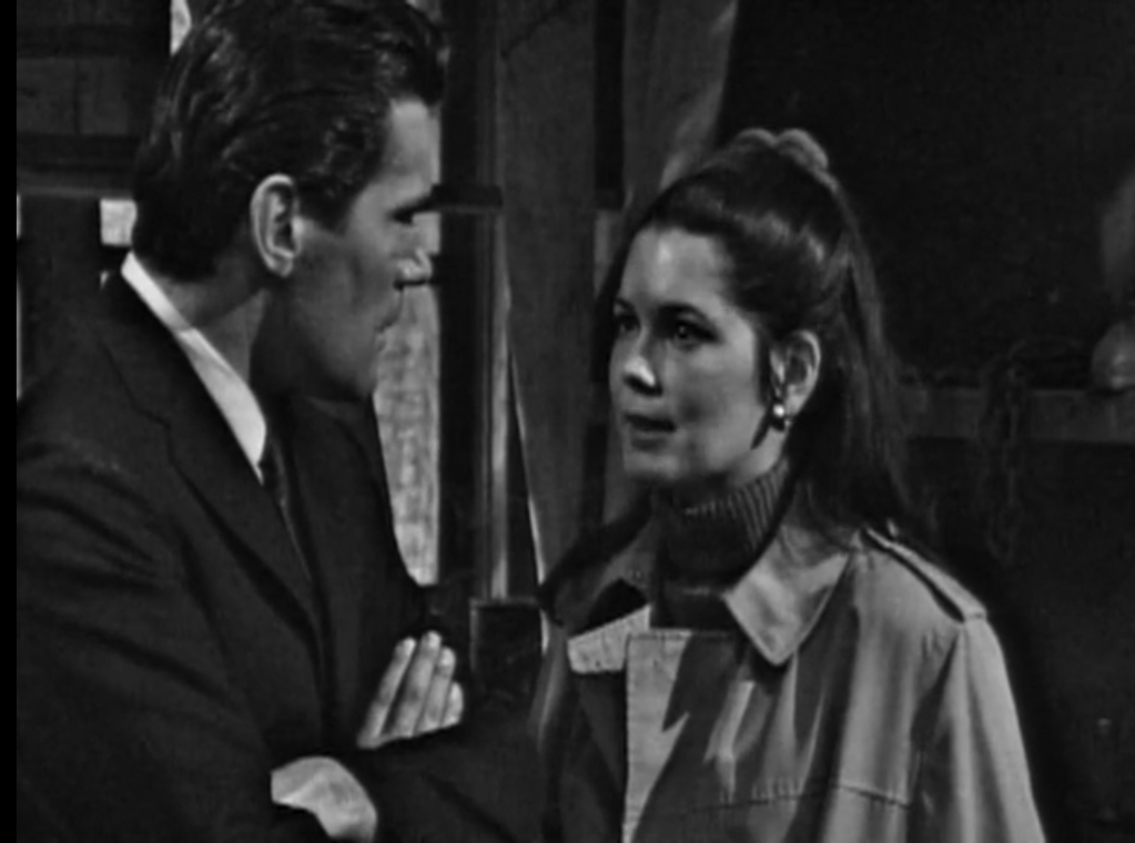 Sproat’s script is clean and direct, one of his best contributions. Lela Swift’s direction is typically crisp and tight. But what really elevates this episode is Jonathan Frid’s performance. Barnabas is alternately transparent and opaque. In the first scene he is open with Ben about his doubts concerning Vicki and Angelique. In the second he talks with Joshua and holds back all the most important information. In the third he is open with Vicki about his problems with her story. In the last, he knows exactly what he wants from Ben, and gets it by deceiving him about his attitude towards Vicki and Angelique. Whether Barnabas is showing his mental processes or hiding them, he is equally fascinating. In the transparent scenes, he draws us into his struggle to choose between two apparently impossible alternatives, and in his guarded ones he prompts us to try to discern his hidden thoughts. It’s a wonderful job, and well worth seeing.