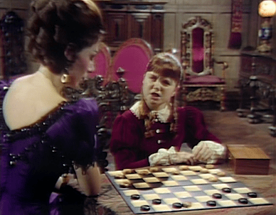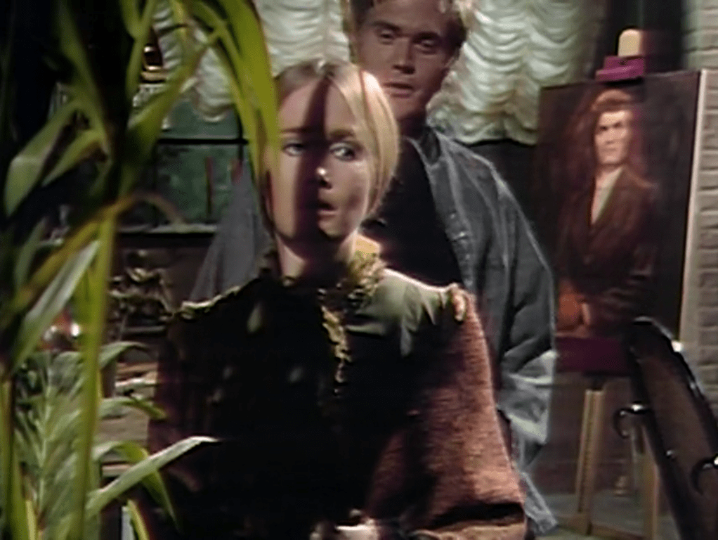 Like many episodes of Dark Shadows, this one ran long and ended with credits only for the cast and for Dan Curtis Productions. The entry on the Dark Shadows wiki says that the director was Lela Swift. I am sure that it was in fact directed by Henry Kaplan. This shot of Nancy Barrett as heiress Carolyn Collins Stoddard is proof positive: