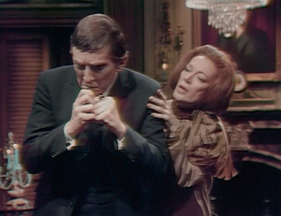 Some say that Barnabas’ frequent references to his longing for Sarah during these weeks are meant to make him easier for the audience to sympathize with. I think this scene shows that the opposite is more nearly the case. They’ve undercut every other ground for liking Barnabas, leaving us only his love for Sarah. When we see that not even a visit from Sarah can thaw him out for any length of time, not only do we have to give up any hope that there is a nice guy hidden inside him, but we also hear the door slamming shut on any possibility that his character will develop in a way that will surprise us. Since he is the show, the closing of that door means that Dark Shadows 2.0 is all but over.