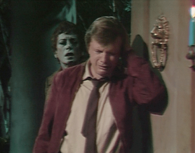 A magical bat has bitten recovering vampire Barnabas Collins on the neck and Barnabas appears to have died. Barnabas’ friend Julia and his servant Willie have a conference to discuss their next steps. Barnabas had expected such an attack, knowing that the witch who made him a vampire in the first place has been working to renew her curse. Willie laments the situation, crying out, “Aw, now we’re gonna hear the dogs howlin’ again!” Evidently that’s the bad part.